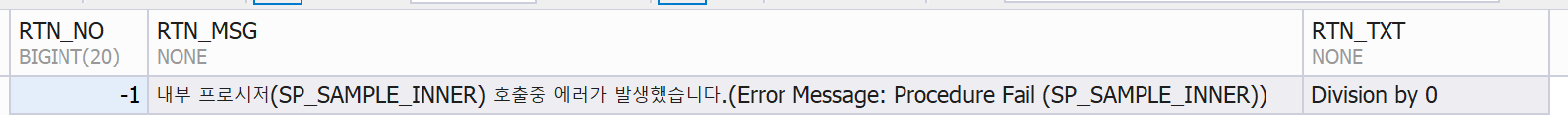 -- 1-6) SQL 예외 발생시, 반환 값 설정