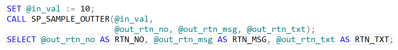 CALL SP_SAMPLE_INNER(v_rlt_val2);