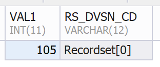 단순히 SP에서 정의된 OUT 파라미터(out_val1)에 값을 할당하여 호출자에게 전달(v_rlt_val1) 처리한다.