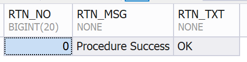 DECLARE v_rtn_msg varchar(1000) DEFAULT '프로시저 실행성공'; #결과반환 메세지